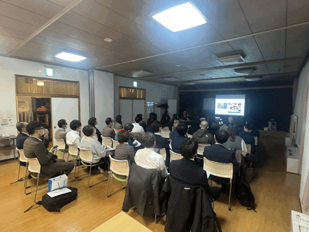 都合により、参加者の方々の姿は映せませんでしたが、会場には50名程の方々が参加されました。始まる前から「こんなに人が居るのか・・・」と、緊張で胃が引き締まる感覚でした。